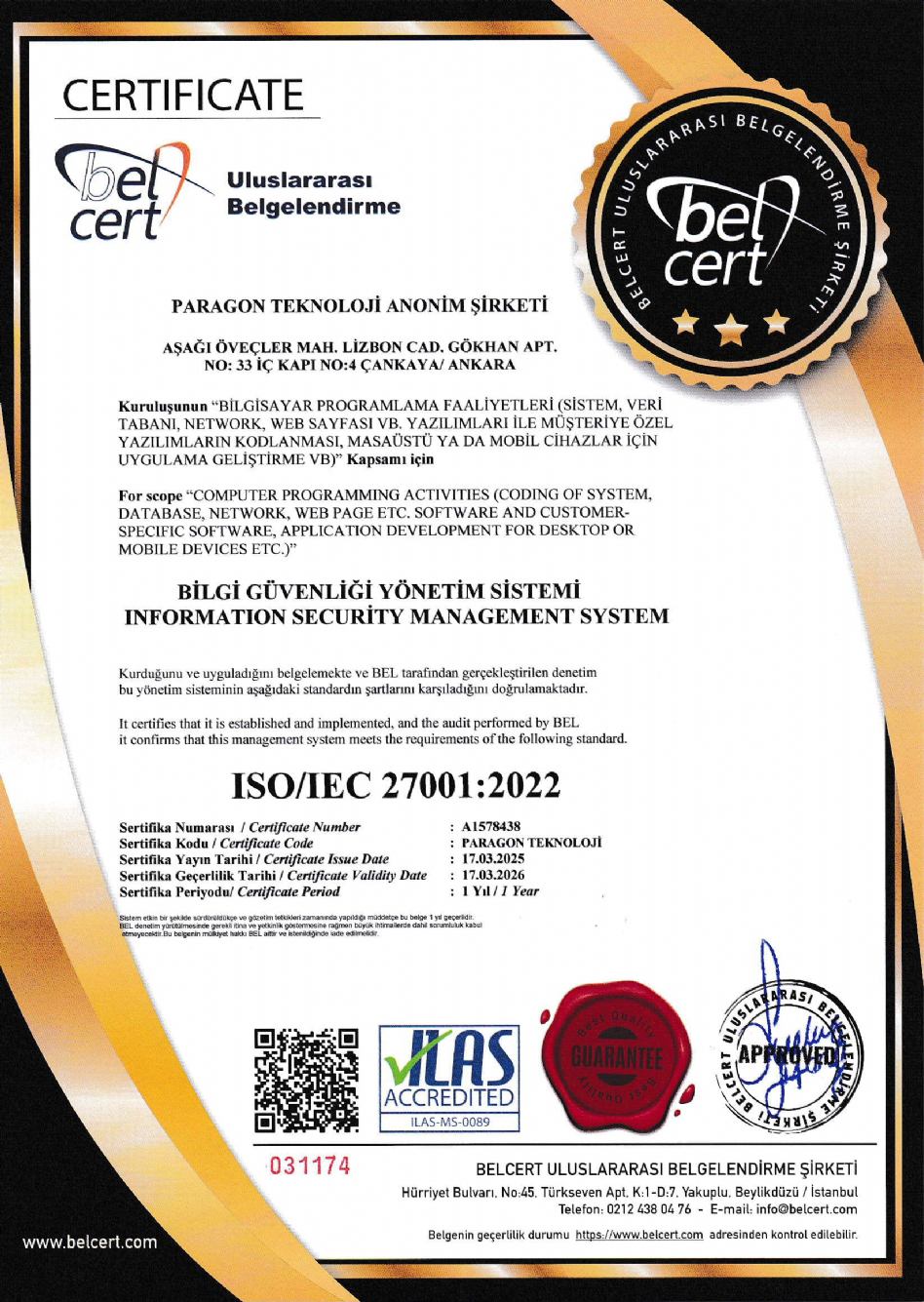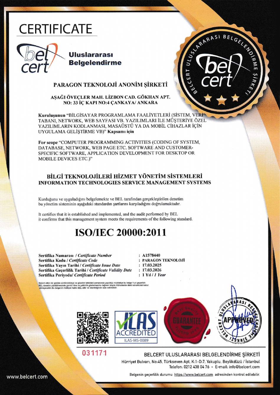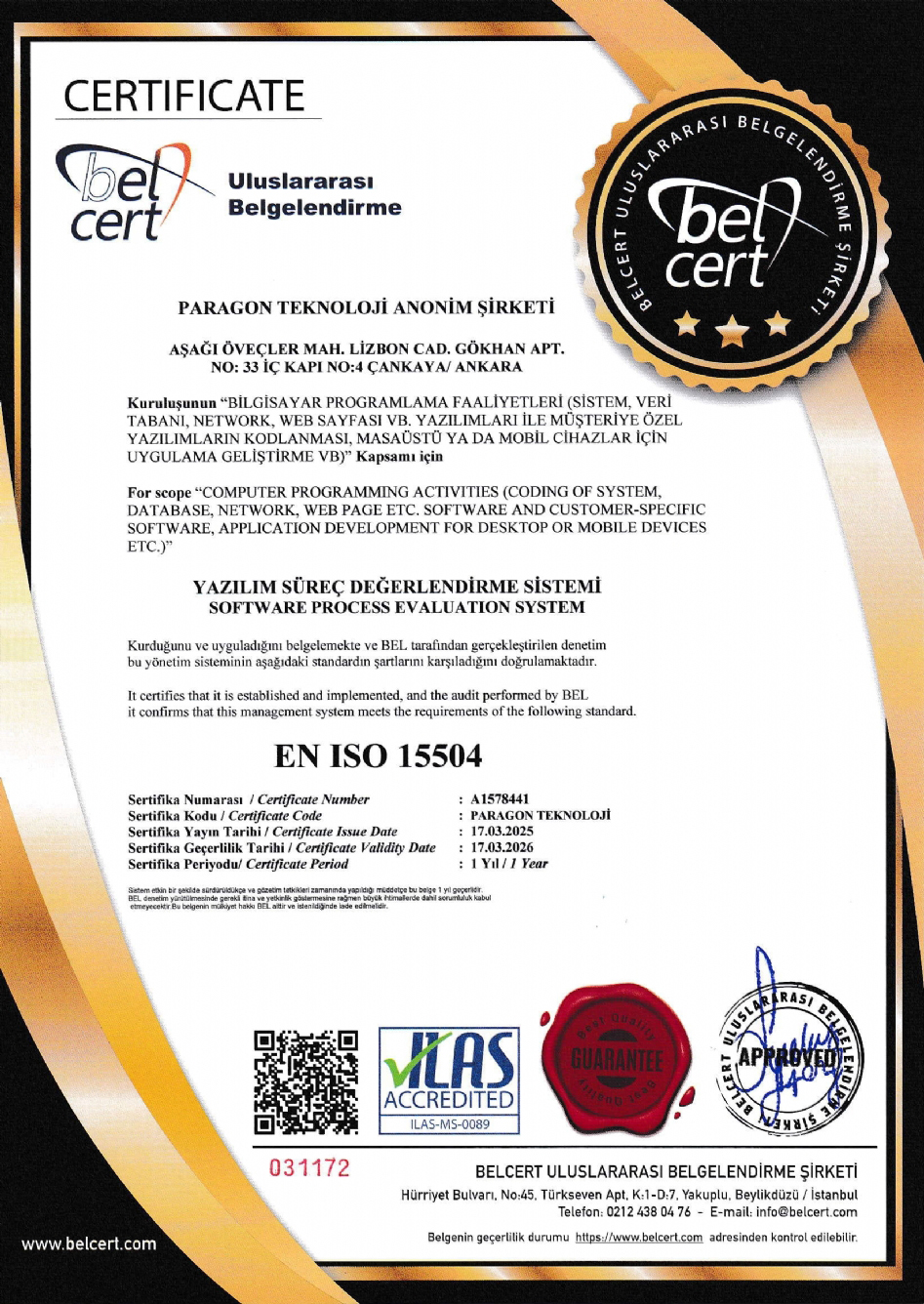 Sertifikalarımız